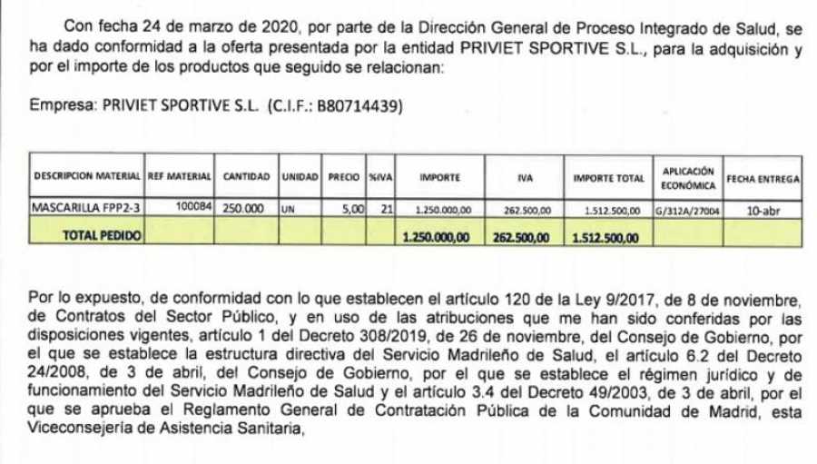 Ayuso hétvégén papírok bemutatásával tisztázta a kérdést, melyeket a párt rendelkezésére bocsátott. Kiderült, hogy bátyja valóban kapott pénzt a „veszélyhelyzetben megkötött szerződés” után, de nem azért, mert közvetített, hanem mert segédkezett a szerződéshez kapcsolódó „alapanyagok beszerzésében és Madridba szállításában„. Az összeg pedig a töredéke volt annak, amivel saját pártja megvádolta őt.
