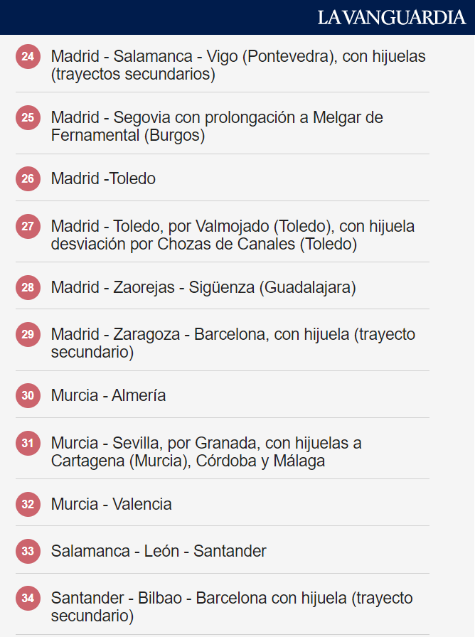 Az intézkedés azokat a társaságokat célozza meg, amelyek állami tulajdonú autóbuszjáratokat üzemeltetnek Spanyolország egész területén, és amelyeket már az intézkedés hatályba lépése előtt is igénybe lehetett venni bérlettel vagy többszöri utazásra szóló jeggyel. Összesen 42 járat/vonal felel meg az előírásoknak, melyek a következők: